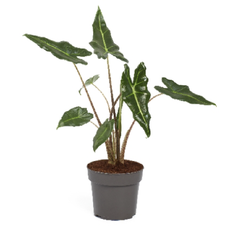 Kena, läikivrohelise peene lehega Alokaasia, mida on lihtne kasvatada. Kahe alokaasia hübriid (ZebrinaxMicholitziana)