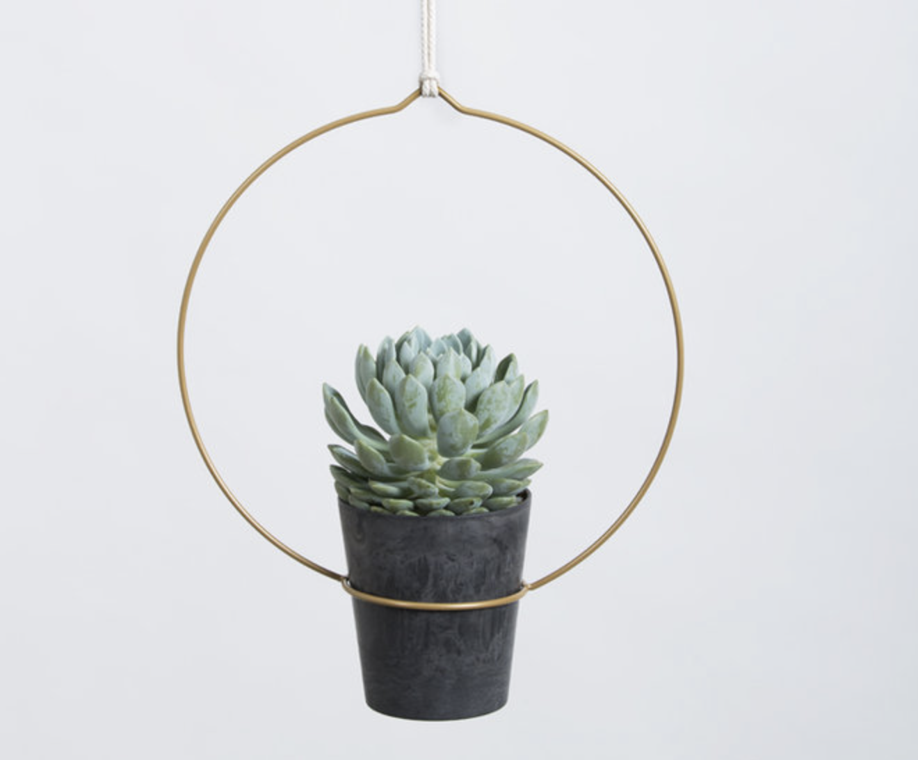 Ümmargune metallist taimealus, mille avasse sobib pott läbimõõduga 12cm. Komplekti kuulub ka puuvillane riputusnöör pikkusega 1,5m.