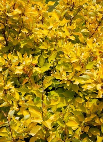 Jõulise kasvuga põõsas moodustab tänu oma püstistele okstele tiheda põõsa. Erepunased oksad on talveperioodil väga dekoratiivsed. Kevadine lehestik on kaunis kuldkollane, suvel muutub toon oranžikamaks. Sügisel on lehevärv roosa kuni roosakaspunane. Sobib eraldiseisva põõsana, grupina, hekiks. Mõnusa koosluse loob koos taimedega, millel tumedam lehestik või nt punased õied.