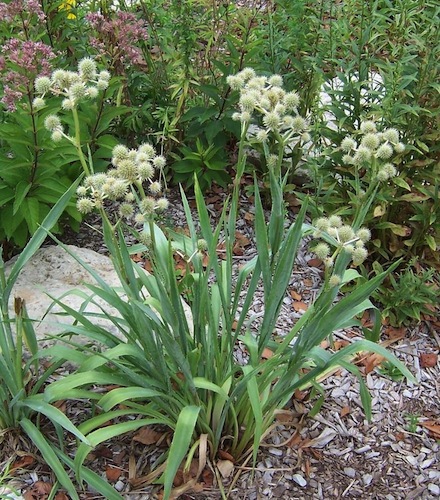 Hallikasrohelisel taimel on põnevad rohekasvalged õiepallid, mis meelitavad oma magusa meelõhnaga. Taime skulpturaalsust rõhutavad ka pikad, huvitavalt mõõkjad lehed, mis on teravate ogadega ääristatud. Tulemuseks on üks erakordselt ebamaise välimusega taim. Sobib kasvatada püsikupeenardes koos siilkübaratega, kassisabadega ja säravate päevakübaratega. Lihtne kasvatada, teeb edukalt ka isekülvi. Võib kasutada lilleseadetes ja kuivlilleseadetes.
