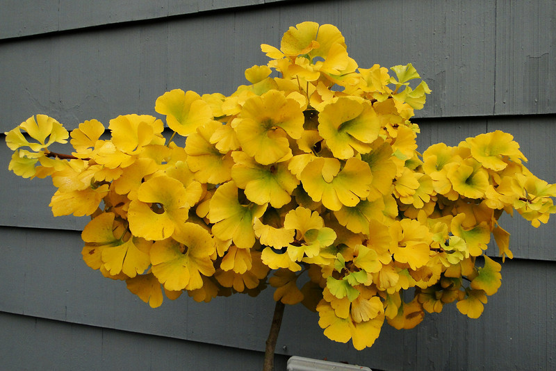 Kõrgele puutüvele on poogitud hõlmikpuu kääbussort. 10. aastaga kasvab sort 60 cm läbimõõduga keraks. Kasv on üliaeglane, sobides nii väikeaeda kui ka moodsasse linnaruumi, sest talub linnasaastet. Tal on väga ilusad, väikesed, lehvikjad ja äärest lokilised lehekesed. Suvel rohelised, sügisel värvuvad kenasti kuldkollasteks. Hõlmikpuu on kahekojaline. Õitseb kevadel, puule ilmuvad väikesed rohelised urvataolised isaskäbid ja emastaim kannab ploomitaolisi seemneid, mida Hiinas tarbitakse toiduks. Eksootiline ja vähenõudlik puu. Puu tuleks istutada tuulevaiksemasse nurka ja eemale teiste puude juurtest.