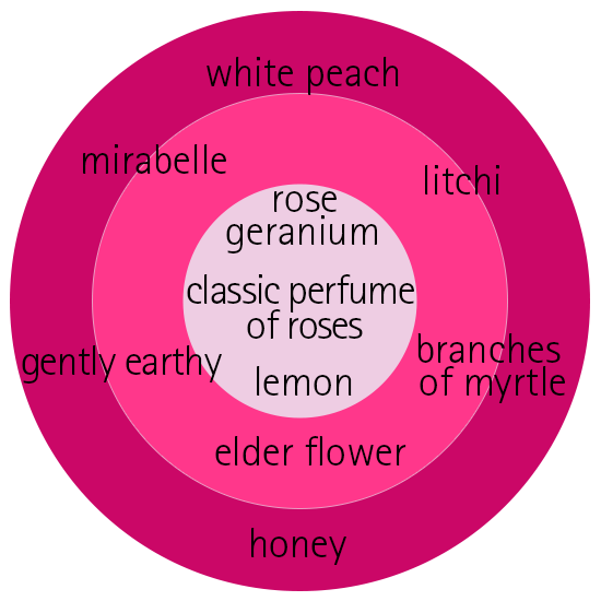 See ideaalse olemusega roos väärib erilist tähelepanu, sest lisaks oma silmatorkavale välimusele pakuvad õied (8cm) ka unikaalset aroomielamust. Täiuslik harmoonia, kus ühtse buketi loob erinevate lillede ja puuviljade kombinatsioon. Klassikalise roosi aroomiosana on lisatud nüanss värkset sidrunit, lõhnabuketi põhjana on kasutatud kurereha omapära. Särtsakust lisab litši. Oma osa on andnud nii leedriõied, virsik kui ka ploom. Lõhnabuketi lõplik nüanss pärineb magusa mee ja maaläheduse segust. Maksimaalne aroominauding avaldub peamiselt lõunal ning õhtuti. Teehübriidroosil on tumevioletsed õienupud, mis avanevad purpurseteks õiteks. Lehestik on tumeroheline ning kerge läikega. Tänu oma vaimustavale lõhnabuketile on roos Kordes Rosen PARFUMA- kollektsioonis. Valikusse kuuluvad roosid pakuvad meeliülendavaid lõhnamänge läbi terve suve. Roos sai oma nime Krahvinna Diana Bernadotte auks. ADR!