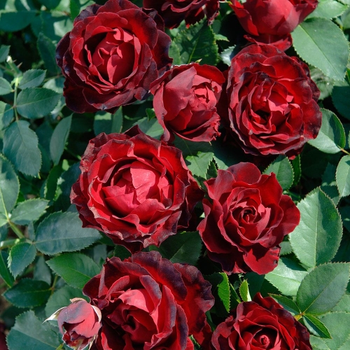 Sametjas punased õied. Kroonlehed hästi tugevad ja lainelised, südamiku lähedalt heledamad, ääred tumedamad. Hästi kompaktse kasvuga põõsas. Hea haiguskindlusega. Üks tublimaid punaseid massistutusteks!