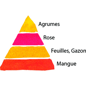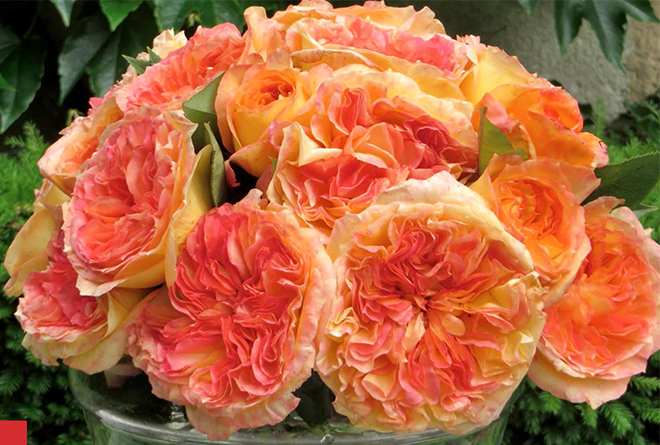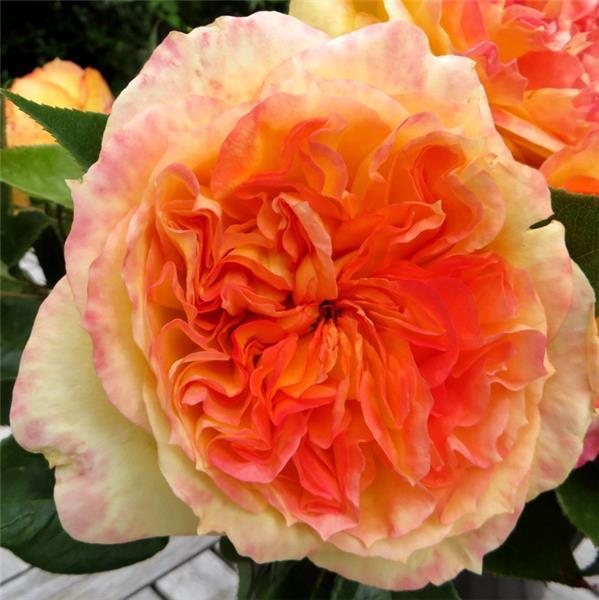 Säravad, suured oranžikaskollased õied avanevad laiadeks, kroonlehtedest tugevalt täidetud rosettideks, mis värvuvad intensiivsemasse oranži tooni. Õite värvidemäng on kui suvine päikeseloojang, avades meeltele ka puuviljalise aroomibuketi rohelistest murunootidest, äratuntavast roosist, tsitruselistest ning mangost. Püstine põõsas, terve ja tumeroheline lehestik. Suurepäraselt sobiv lõikelilleks, õied püsivad vaasis kaua.