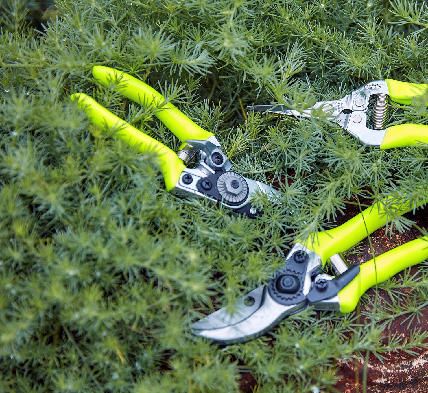 17 cm pikad, kaaluvad vähem kui 150 g. Tugevad käepidemed on kaetud mittelibiseva kummitaolise erkkollase kihiga. Erksa värviga käepide paistab hästi silma, seetõttu pole hirmu, et käärid lehestiku sees kaotsi läheks. Lõikab kuni 1,5 cm diameetriga oksi.