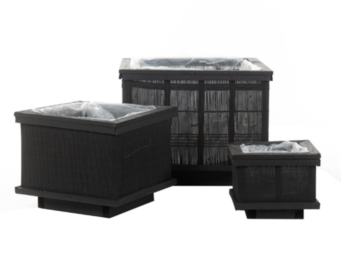 Kenad jaapanipärased bambuspotid, mis on seestpoolt vooderdatud kilega.