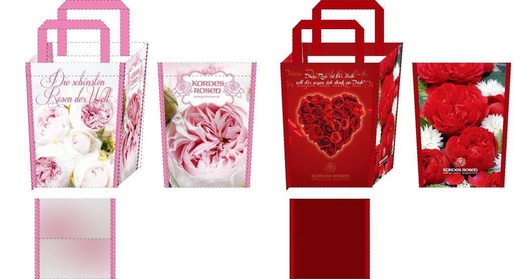 Kui soovid sõbrannale või sõbrale teha armsat kingitust, siis nüüd saab väljavalitud roosile lisada ümber ka stiilse roosipiltidega kaunistatud Kordes Rosen kinkekoti. Kinkekotte on kahte värvi – erksam roosa ning leegitsev punane. Kott on tugevast tekstiil-kilesarnasest materjalist.