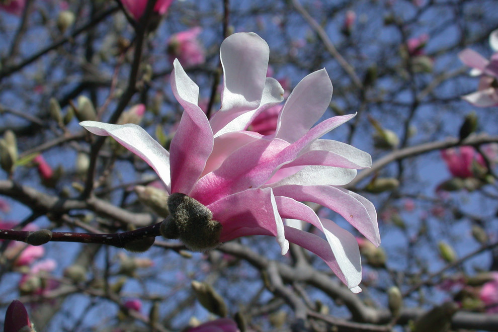 Lõhnavad õrnroosad õied ilmuvad puule enne kevadisi lehti. Õied on avanedes karikakrasarnased, pisut alla langevate kroonlehtedega. Lehed on kaunid tumerohelised kogu hooaja vältel, sügisel säilitab rohelise värvi. Väga heade taluvusnäitajatega. Puule meeldib päikeseline koht, hea drenaažiga sügav, toitainerikas muld. Puu ümbert peaks mulda korralikult multšima, et välistada umbrohu invasiooni ja et hoida niiskust ja jahedust juurtele. Ei taha tuulist kasvukohta. Lõika (kui vaja) varakevadel või varasuvel, kuid minimaalselt, et säilitada terve välimus.