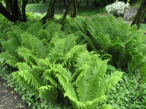 Kaunis heitlehine sõnajalg, mis moodustab jäikadest leherosetikestest suuremaid kolooniaid. Ereroheline lehestik meenutab hiiglaslikult kohevaid jaanalinnu sabasid, need on kenasti moodustanud korrapärase lehtri. Levib maa-aluse risoomi abil. Oluline on, et taime juured läbi ei kuivaks. Taim on suurepäraseks aksendiks varjuaeda või tagapõhjaks teistele madalamatele varjutaimedele. Mõjub kaunina suurema massistutusena. Vajab kasvamiseks ruumi. Sobib loodusaeda, maakodu-aeda. Põdrad pigem väldivad seda taime.