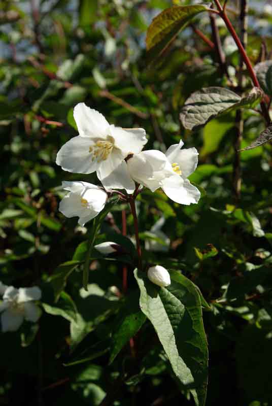 Hinnatud, hiljuti aretatud ebajasmiin, mille teeb eriliseks tema šokolaadipruun-purpurne uus kasv. Noored võrsed ja lehed paistavad suurepäraselt vanema rohelise lehestiku taustal välja. Keskmise kasvuga, kuid väga suurte, lumivalgete lihtõitega, mille lõhn on meeldivalt tugev, apelsiniõie aroomides. Tolerantne pinnase osas, kuid annab parima tulemuse päikese käes kasvades. Lõika vormi või noorenda peale õitsemist.