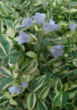 Roomav sinilatv on madalama kasvulisem ja laiuvam kui harilik sinilatv. Sordi eripärana on pisikesed lehed valge-rohelisekirjud ning siniladvale iseloomulikult asetsevad lehed paaritusulgjalt. Noored lehed on roosaka tooniga ja kuna uusi lehti kavatab taim kogu vegetatsiooiperioodi siis on puhmik väga atraktiivne kevadest sügiseni. Kaunid kellukestelaadsed õied kõrguvad tugevate püstiste varte tipus. Õitsenud õisikud võib ära lõigata. Madala kasvu tõttu sobib hästi ka kiviktaimlatesse.