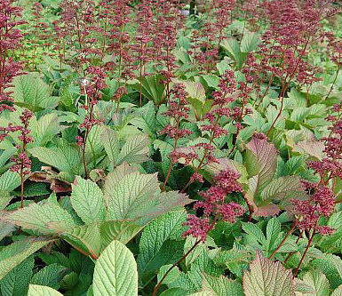 Leherood ning taime varred on punakaspruunid. Lehed ise on lillaka või roostepunase varjundiga. Suurted lehed koosnevad väiksematest laiuvatest lehekestest, millel jämedasakiline äär. Õied on alguses valged või heleroosad, hiljem muutuvad üha lillakaspunasemaks. Imeline eelajaloolise välmusega taim lisab omaltpoolt taimealale ebatavalisust. Väga suurepärane taim just varju- ning niiske pinnasega aladele, kuid kasvab edukalt ka päiksepaistelise veekogude ääres.