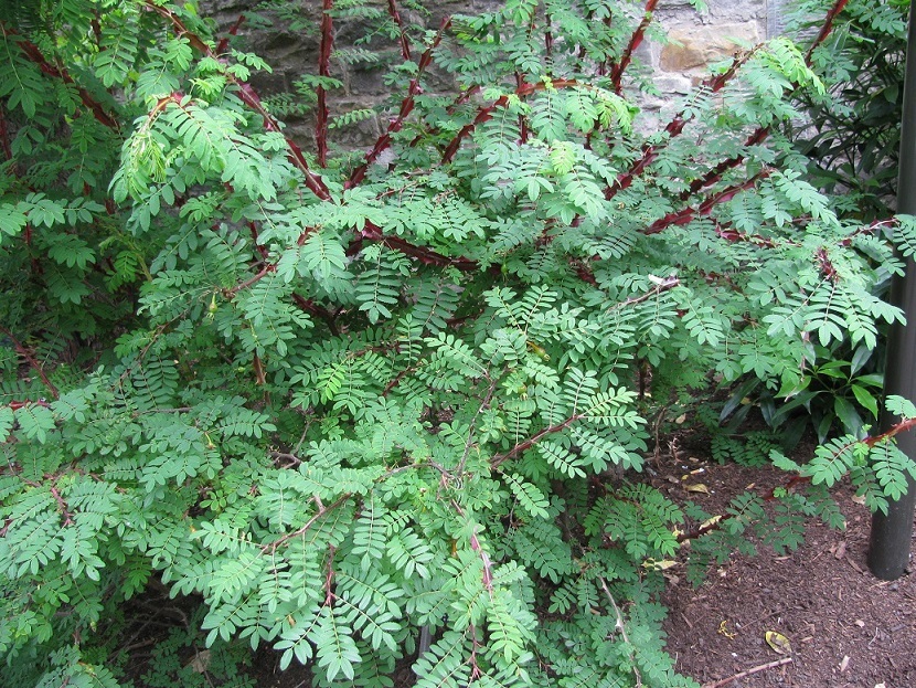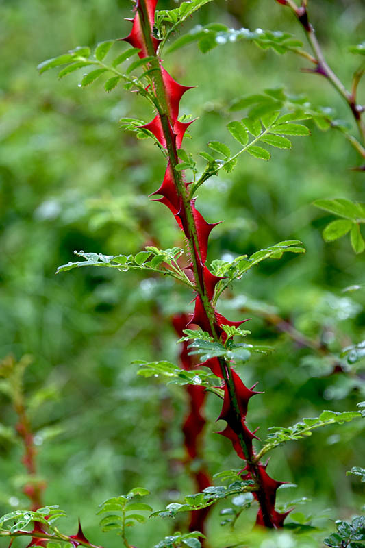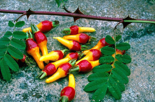 Omei kibuvits on elegantne, looduslik põõsas, mis kasvab kuni 2 m kõrguseks, pikliku kujuga peenete, suletaoliste lehtede ja sirgete okstega. Põõsal on ülimalt dekoratiivsed erepunased ogad. Väikesed puhasvalged lihtõed asenduvad sügisel kahevärviliste originaalviljadega – kollane “säärel” ja ülaosas punakaspunane.