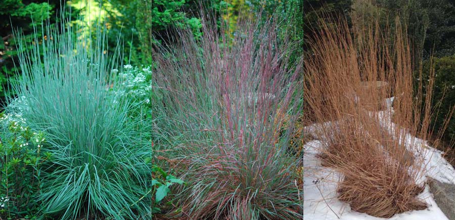 Kaunilt püstine kõrreline mille hallikassinine värvus muutub puhmiku tippus lillakaks. Hilissuvel ehivad puhmikut läikivlilladest seemnepööristest tekkivad kohevad, hõbevalged pähikud. Sügisel on taim roosakas- oranzides toonides. Varakevadel tuleb maapinnalähedalt tagasi lõigata, et uued võrsed saaksid tärgata ja puhmik püsiks kaunilt puhas ja värske.