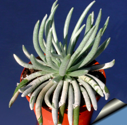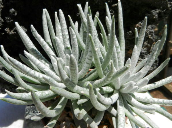 Lõuna-Aafrikast pärit väike hõbejas sukulent kasvab umbes 30 cm pikkuseks. Hea pinnakatja, moodustab suuri padjandeid. Banaanikujulised silindrilised lehed kasvavad ligi 10 cm pikkuseks ja moodustavad kena roseti. Õied meenutavad veidi kollast karikakart ja kõrguvad pika varre otsas.