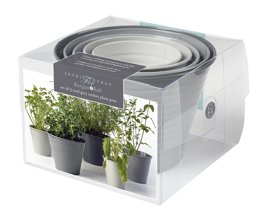Komplekt koosneb 5st erineva suuruse ning värvitonaalsusega potist. Tegemist on emailitud metall pottidega. Disainer Sophie Conran on loonud toalillepottide komplekti, mis koos kombineerides aitab luua arhitektuurselt pilkupüüdvaid taimenurki.