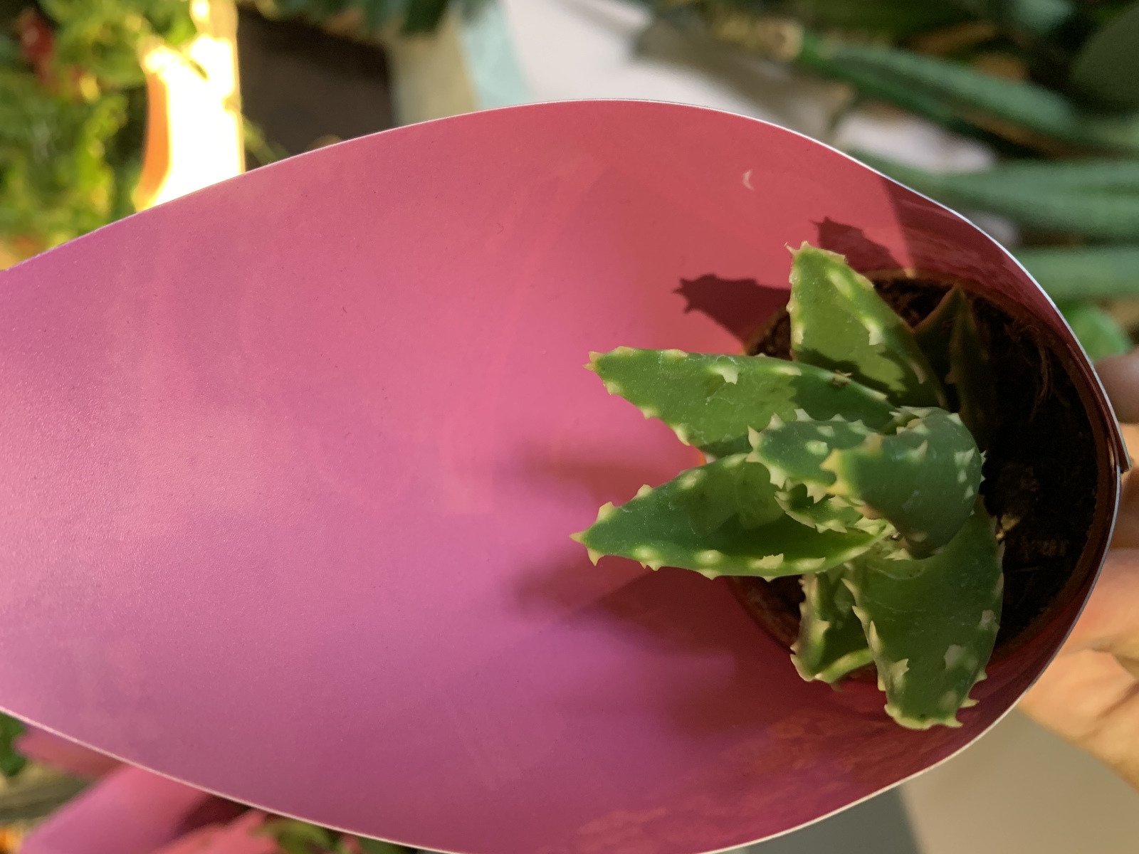 Erinevad sukulendid kenas roosas ümbrises. Poti läbimõõt 5,5cm.