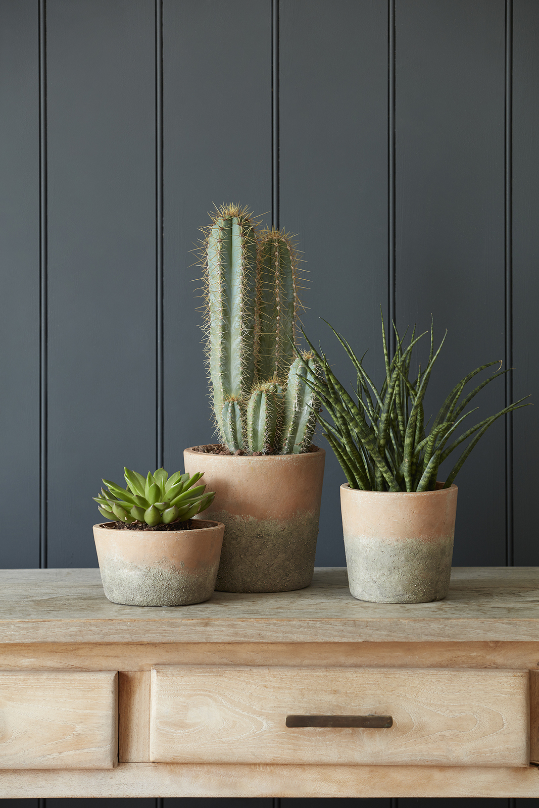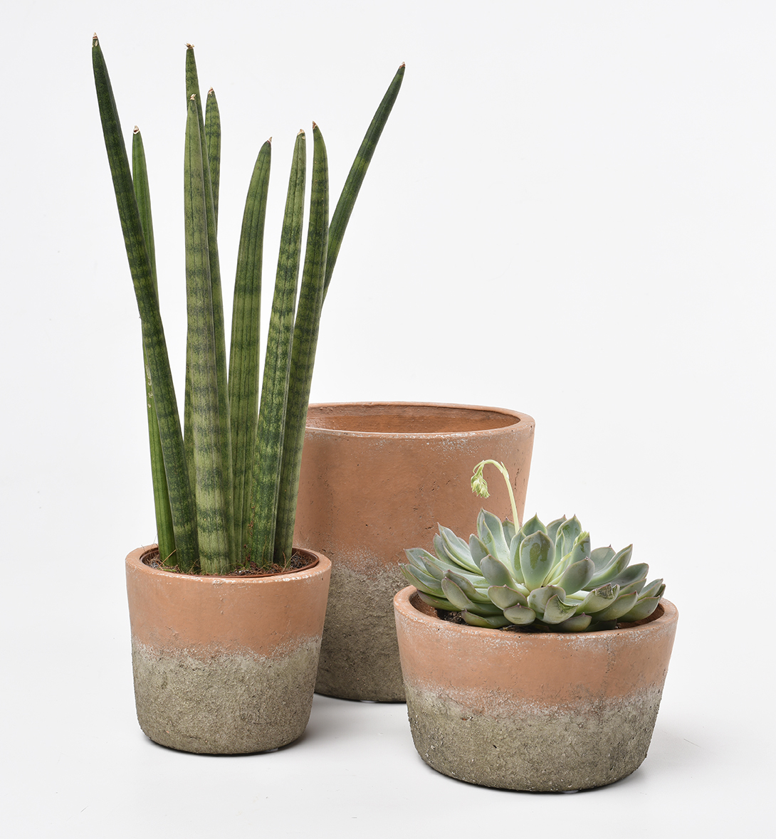 Klassikalise vormiga potid, mis valmistatud väga traditsioonilisest terrakotast. Pottide pealispind on põnevalt töödeldud ning tulemusena on saadud kulunud mulje. Vanaaegse välimusega potid toovad tuppa kodust maamaja hõngu. Saadaval kahes eri suuruses.