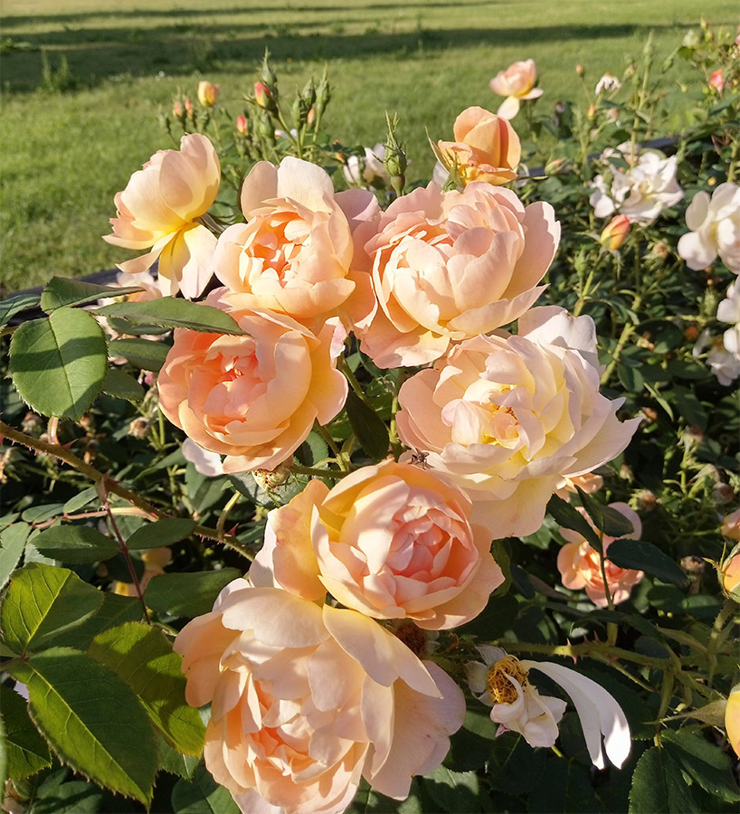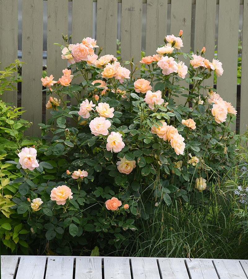 Veetlevate õitega roos toob esile Inglise rooside seas esineva mitmekesisuse. Kahekümne kroonlehega aprikoositooni kausjad õied on kenasti taime peale ära jaotatud. Õied meelitavad aeda erinevaid tolmeldajaid. Taim pakub ka kerget aroomi, mis erinevate õite puhul veidi varieerub, mõni on rohkem tee teine aga pigem mürri lõhnaga.